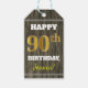 Den här märkrn med födelsedagspresent innehåller ett meddelande som "LYCKLIG 90:e BIRTHDAY, Jessica!", där namn kan anpassas och där numret "90:e" har ett utseende som liknar faux/imitation guld. Den har också en bakgrund med rustiskt utseende på träet. Baksidan har en Från:-linje. Märkre av födelsedagspresent som dessa skulle kanske kunna användas på gåvor som ges till någons nittioårsdag. [~Z0000160]