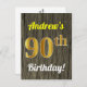 Faux Wood, Faux Guld 90:e Birthday & Custom Name Vykort
