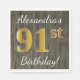 Den här enkla pappra napkin-designen innehåller ett meddelande som "Alexandra's 91:a födelsedag!", där "91:a" har ett faux-guld-liknande utseende, på en ytlig träbakgrund. Namn kan anpassas. Den skulle kunna användas i en födelsedagsfest till någon som firar sin nittioårsdag. [~Z0000084]