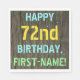 Den här födelsedagsfesten med roligt napkin har ett meddelande som "LYCKLIG 72:a BIRTHDAY, FÖRSTA-NAMN!", där namn kan vara personlig. Bakgrunden har ett strålande, brunt, faux-trönans utseende mönster. Anpassadets meddelandetext har färg som blått, gult och grönt, och det har ett utseende som inspireras av det som består av målade, stencilade bokstäver. Napkins som dessa kan kanske användas i en födelsedagsfest till någon som firar sin sjuttioandra födelsedag. [~Z0000292]