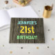Den här roligten har en guestbook-design som "JENNIFER's 21:a BIRTHDAY!", där namn kan vara personlig. Bakgrunden har ett strålande, brunt, faux-trönans utseende mönster. Anpassadets meddelandetext har färg som blått, gult och grönt, och det har ett utseende som inspireras av det som består av målade, stencilade bokstäver. En gäst med födelsedagstext bok som detta skulle kunna användas så att deltagarna kan lämna meddelanden i ett party som hålls för någon som firar sin tjugoförsta födelsedag. [~Z0000320]