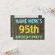 I födelsedagsfest inbjudan-roligten finns ett meddelande som "NAMN-HERE's 95:e FÖDELSEDAGSFEST!", där namn kan vara personlig, på framsidan. Bakgrunden har ett strålande, brunt, faux-trönans utseende mönster. Anpassadets meddelandetext på framsidan har färg som blått, gult och grönt, och det har ett utseende som inspirerats av målat, stencilat bokstäver. Baksidan innehåller ett anpassat meddelande som kan innehålla relevant information om födelsedagsfesten, t.ex. när och var den förvaras, tillsammans med all annan viktig information. Födelsedagsfest inbjudan som detta kan vara ett roligt till inbjudan familj och vänner till en födelsedagsfest som hålls för någon som firar sin 95-årsdag. [~Z0000291]