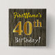 Detta enkelt kvadrerar knäppas designsärdrag en meddelandenågot liknande"FirstNames 40th födelsedag! " med "40th" ha en look för faux-/efterföljdguld-något liknande färgläggning, på en faux/en wood mönsterbakgrund för efterföljd. Namn kan vara personligen. Knäppas något liknande som dessa kunde kanske ha på sig av gäster på en födelsedagsfest för någon, som firar deras fyrtionde födelsedag, var partyet rymms i ett stort område med raddor annat folk gåva (liksom en stad, parkera eller ett nöjesfält). [~Z0000167]