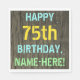 Denna roliga födelsedagsfestservettdesign FÖDELSEDAGEN för 75:e presenterar för en meddelandenågot liknande "den LYCKLIGA, NAME-HERE! ", var namn kan vara personligen. Bakgrunden presenterar ett lantligt, brunt, mönster för wood korn för fauxen det utseendemässiga. Anpassademeddelandetexten presenterar färgnågot liknandeblått, gult och grönt, och den har ett utseendemässigt inspirerat vid det av målad stencilerad bokstäver. Servettnågot liknande dessa kunde kanske användas på en födelsedagsfest för någon som firar deras femte födelsedag för sjuttio. [~Z0000292]