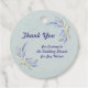 Tack för att du kom till en bröllopsdusch favor etikett i cirkulär design. Orden på framsidan kan alla ändras till dina egna ord.Taggen har en handdator målad bakgrund och två lavendel sprutar av blommor.