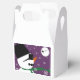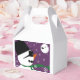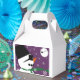 Snögubbe och jultomtens favoritbox - Alla klädda i en dusch i snö tittar upp i måne där tomten kan ses flyga vidare för att slutföra sin lycklig resa. Originalteckning av LC. Copyright 2018