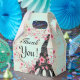 Blommarna Eiffel Torn, Aqua Blue och Rosa Cherry är ett hjärta och Eiffel Torn på en vacker Shabby chic Antique Music Lakan-bakgrund för ett vackert romantiskt tema tack för att du ger en förmånslåda. Perfekt för Bröllop, Spara datumet, födelsedag, det är en flicka, Middag Party, årsdag, Bachelorette Party-favörer.