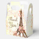 Paris Eiffel Torn, mjuk gult och vit med hjärtformade Blommar för Rosa och persikokörsbär. Modern Shabby chic Antique Music Lakan Grunge-bakgrund för ett vackert romantiskt rent vårtema tack för att du presenterar en favoritbox. Perfekt för Bröllop, Spara datumet, födelsedag, det är en flicka, Middag Party, årsdag, Bachelorette Party-favörer.