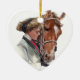 Den här Vintagen med häst och dam har tidlös lockelse för alla riddare och djur älskare. Kvinnan erbjuder en behandling och njuter av en tyst stund med sin favorithäst.