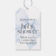 Tvättställ-taggar för att tacka dina duschgäster med en stor vattenfärgsblå båge som är vinklad mot sidan på märkrns framsida. Snyggt ansikte-par innehåller ett modernt teckensnitt och en elegant-serif. Denna punkt är ett underbart val för den blivande mor som förväntar sig ett pojke. Anpassa den lättförståeliga textmallen med hedersgästen namn.