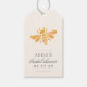 Våra elegant märkre för Golden Bee-möhippan är perfekt för att fästa vid favörer eller använda som platskort. Utformningen har en enda honungsbin i vattentäta färger med gyllene gulter, och anpassningsbarna - gästen av hedersans namn, händelsetyp och datum - i chic charkol grått. Tom backar lämnar utrymme för ditt anpassningsbar-meddelande eller gör det möjligt att även använda dessa märkre som platskort.