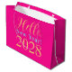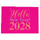 Detta är ett modernt och chic, Nyårsafton firande. Det går i riktning mot shock rosa med ett modernt typskript. Det har budskapet: "Hej nytt år! 2028" Idealisk som en fest föredrar väska eller presentväska. Om du vill anpassa eller lägga till firande, kan du även ändra resten av texten genom att klicka på Anpassa. Om du vill ändra färg eller teckensnitt markerar du verktyg som redigerar designen. Om du vill ha hjälp med att anpassa, matcha produkter eller ett anpassad design-e-postmeddelande: ursuladawnmoon@gmail.com