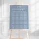 Snyggt - nedladdningsbart dammigt blått bröllop-platshållarskylt i upp till 16 bord med "våra favoriter" i enkel modern vit typografi och ett chic vitt skript med dekorationer och ditt första namn och bröllop gått med tillsammans av ett hjärta. Med alternativet för digital nedladdning kan du redigera med ändringar i sista minuten och skriva ut lokalt.