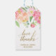 Dessa "kärlek & tack"-favorittaggar för persiko- och rosa-peonin är perfekt för elegant bröllop. Blommigtens utformning har en vacker arrangemang av vattenfärgspennor i och korallära nyanser som överensstämmer med den vackra faux-guld-folie-kalligrafin. Anpassa etiketterna med namn i bruden och brudgummen och bröllop-datumet. Obs! Den här designen har inte äkta guld-folie. Det är en grafik av hög kvalitet som framställs som guld-folie.