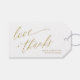 Modern Elegant-Märkre för favoriter i Guld: De här elegantens calligraphy-favorittaggar har ett romantiskt guld-skript parat med ett elegant serif-teckensnitt. "kärlek & tack" från ord finns i ett modernt kalligrafiskript. På baksidan står namn & bröllop på en svart bakgrund. Skriv bara in namn, bröllop-datum, och tack för ert budskap!