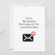 Skicka leenden med vårt kort: 'Du är min favoritnotis i den här kärleksfyllda inkorgen.' Det är inte bara ett kort; det är ett sött meddelande till den som lyser upp dina dagar. Fira kärlek, födelsedagar och årsdagar med en touch av teknik-inspirerad tillgivenhet. Skål för att vara varandras favoritnotis!