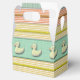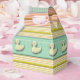 Lagrar av groskorn och gingham rosett band och den tvinnade ryggmärgen springa över och under en charmeringslinje med liten "anka i rad". . . i båda riktningarna. De mjuka gulterna, orangarna och gröntarna gör detta till en naturlig del för spädbarn och babyduschar. Du kan fylla det med maträtter eller andra konfektioner eller priser för gästerna i din babydusch. Som en presentlåda är den bara stor nog att passa in matchande nappar, som också finns i den här samlingen, eller en charmerande nyfödd hatt eller bootyer som samordnas med färg.