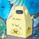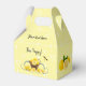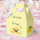 Den här snyggt designen av förmånslådan har en gult och vit bakgrund mönster. På fram- och bakpanelerna finns en brun korgvide basket fullt av citroner. Texten lyder "Bee Lycklig!", med ett litet bi. Sidopanelerna har två hela citroner och en halv citron. All text kan anpassas.