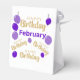 Grattis på födelsedagen februari-födelsedagets firande födelsedag med de här elegantens favoritboxar, designade för att göra party lite sofistikerat! Med "Grattis på födelsedagen" i guld, är dessa lådor vackert accentuerade med lila ballonger och ord "februari", inspirerade av månadens ametyst-födelsesten. Perfekt för att hålla mattor, små gåvor eller party favors är dessa torra lådor lika praktiska som snyggtar. Gör februari firande oförglömlig med dessa livliga och charmerande party-essentiella faktorer!