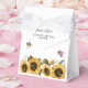 Genderna Rustic och boho bin visar partiaffischen med en vattenfärgad illustration av gult solblommor och baby med humlor.