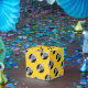 Lacrosse-rutor för övernattning eller studentfest som har en lax-stift på gultens bakgrund. Redigera text som ska anpassas efter dina överordnade lagspelare.