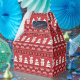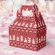 Ett sött mönster med sticka som ser ut som kor och Julgranar.