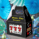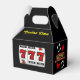 En favoritruta med ett kasinotema. På framsidan och baksidan finns tre röda svevar, vita sidor har ord-jackpot och de fyra symbolerna för att spela kort. Texten kan anpassas.