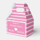 Perfekt roligt rosa och vit syrlig, strimlad bröllopsaffär som är anpassade med bruden och brudgummen namn och som är redo för en Midnight Snack-affär