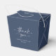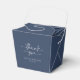 Tack till gästerna i stil med den här minimalistiska flodbäddboxen. Den här eleganta och moderna designen har en djup marin bakgrund med elegantens vita skript och tillför en sofistikerad beröring till din bröllopsmottagning. Perfekt för att hålla små presenter, behandlingar eller knappar. Den här förmånslådan är perfekt för bröllop, möhippor och förlovningsfester. Ett tidslöst och elegant sätt att visa uppskattning.