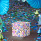 Den här partikellådan är perfekt för firande i bröllop, som visas med ett vackert vätefärisk blommigt. Anpassa det här objektet eller köp som det är. Lagrar skriver ut freepik.com
