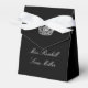 Partikelfavör visas i svart med vit ribbonbåge och med skönhetstävling krona tryckt. Anpassa det här objektet och ändra skönhetstävlingens rubrik och namn till ditt.