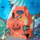 Det är halloween fest som firar det kommande Halloween. Denna handdragna kawaii- och roligt-illustration har halloween-tecken, vampyr, pumpa, Frankenstein, grym replik, varulv, skelett, spöke och pumpa.