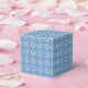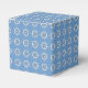 Den vita fraktens hjälm replikeras i många rader som täcker lådan, på en medelblå bakgrund