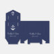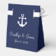 Marina blå nautisk bröllopsboxar (tält med vitt band) med ankartext och anpassade - du kan lägga till bridernas och triomens namn och bröllop.