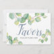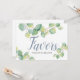 Designad för att matcha min vattenfärgssamling av eucalyptus greenery bröllop, det här eleganten botaniska tecknet inbjudan gäster för att ta en tjänst. Anpassa med två linjer anpassningsbar text i calligrafi och blockering (visas med "Favors; ta ett"). Designad med en övre gräns av min ursprungliga eucalyptus foliekonst är nyans av gröntar. Lägg till din egen personliga beröring med en 5 x 7 ram. Om du vill se matchande bröllop-skrivarsvit går du till www.dotellabelle.com/vginvites