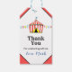 Tack till födelsedagsfestens gäster med dessa förtjusande märkre som är perfekt för att de sätter sig i party favors eller godis påsar. Utformningen har en vattenfärgscirkus tält med ditt anpassningsbar-meddelande och namnteckning.