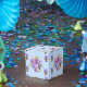 Shabby chic blå pensé prickig pensé blommig tebjudningstårtsask. Designad utifrån en av mina akvarellmålningar.