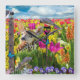 Fawn Birds Fält of Flowers Fyrkantig Klocka