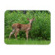 En fawn (baby hjort med fläckar) som står i fält framför stängslet tidigt en sommar morgon. Bilden togs i Poughkeepsie, NY (i Hudsondalen) av Debbie Quick of Debs Kreativ Bilder. Om du vill se fler foton från Debbie kan du läsa hennes webbplats på: www.debscreativeimages.com