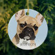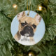 Popkonst inspirerad fransk bulldog julgranskula med en röd fawn fransk bulldog på en pastellblå bakgrund som kan ändras till valfri färg, lägg till ditt husdjurs namn.