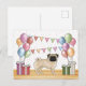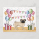Fawn Mops Hund Färgglada Pastell Födelsedagsballon Vykort