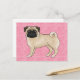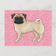Fawn Pug Tecknad Mops Kärlek Heart Mönster Rosa Vykort