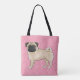 Fawn Pug Tecknad Mops Rosa Kärlek Hearts Mönster Tygkasse