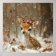 Fawn Red Berries Snö Forest Falling Löv Poster
