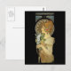 Bilden av den unga kvinnan i vintage art nouveau som håller en vit ludd. Den tjeckiska konstnären Alfons Mucha.