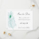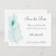 Det här sparar datumkortet med en stiliserad påfågelfjäder i blått med öga i den ludd som kontrasterar i en grönt. Den pappra är vit 110 lb täckvikt med en projektionsyta yta. Detta papper innehåller 50 % återvunnet innehåll.