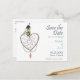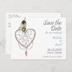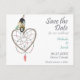 Här är ett sött och färglöst Spara vykortet Date Bröllop som har ett westernt tema för Bho stil. Den har en hjärtformade, begad drömmares catcher som är dekorerad med fjädrar. De två fjädrarna har var och en olika mönster i färg i guld, svart, kräm och teal. Grund i catcher hänger en korallfjäder i rosan. Din anpassningsbar står i grått och teal på högerna, och det finns två extra texter fält på kortets baksida. Det finns matchande bröllop-produkter, inklusive inbjudningar, i vår butik.