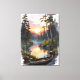 feather frame art, surreal nature, sunset forest, canoe painting, lakeside escape, magical realism, digital oil painting, tranquil scenery, wilderness art, autumn forest, AI generated art, dreamlike landscape, serene art, forest lake, feather portal