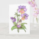 En purpurfärgad bevingad skälmskt naturväxen sitter att meditera på en amethyst under en stor lila- och tangerinepansyblomma. En underbar illustration för Februari födelsedagar!