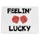 " FEELIN' LUCKY " RED DICE with BLACK TEXT LETTERING